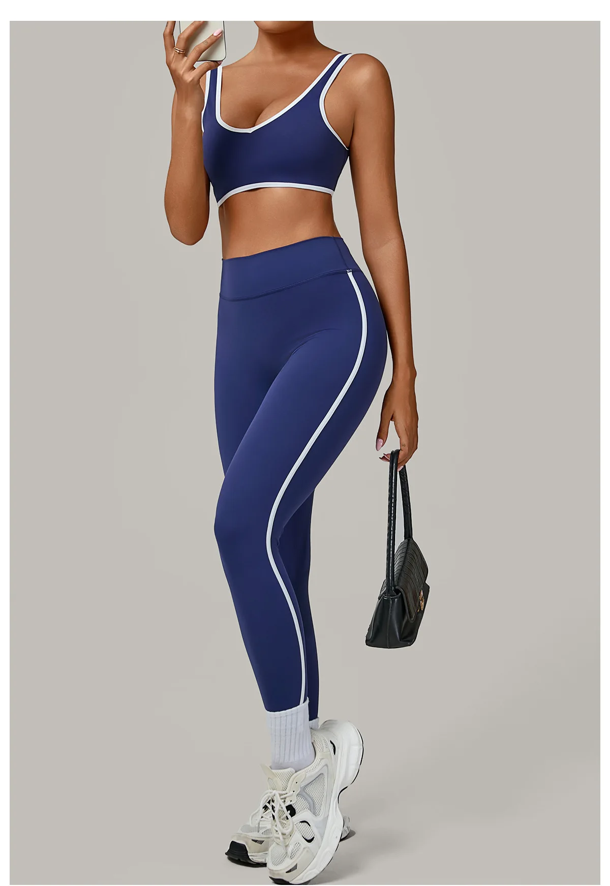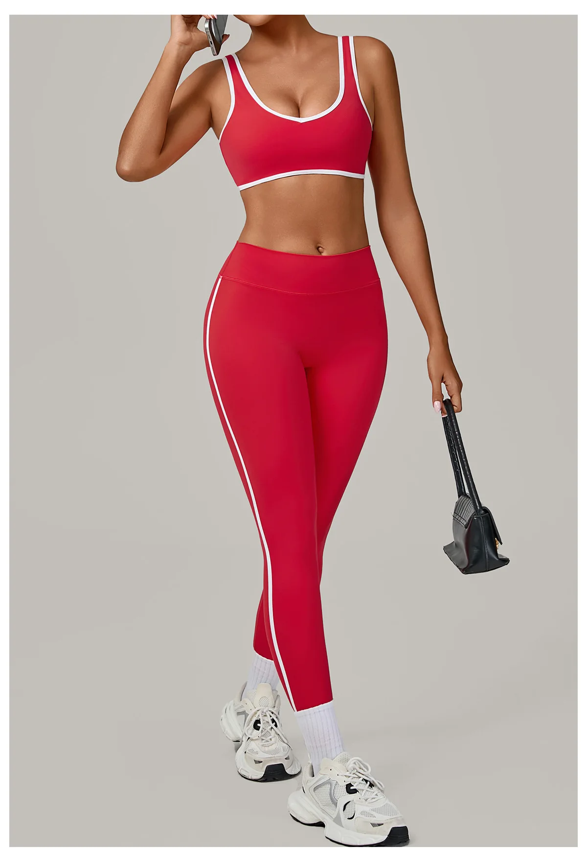 Retro-Sport Side-Stripe Legging Set | High-Waist & Sculpting Workout Outfit