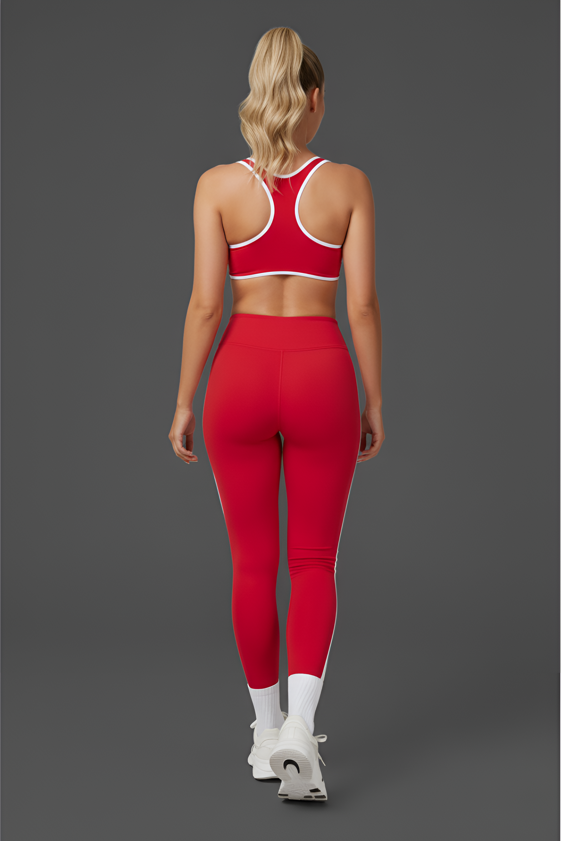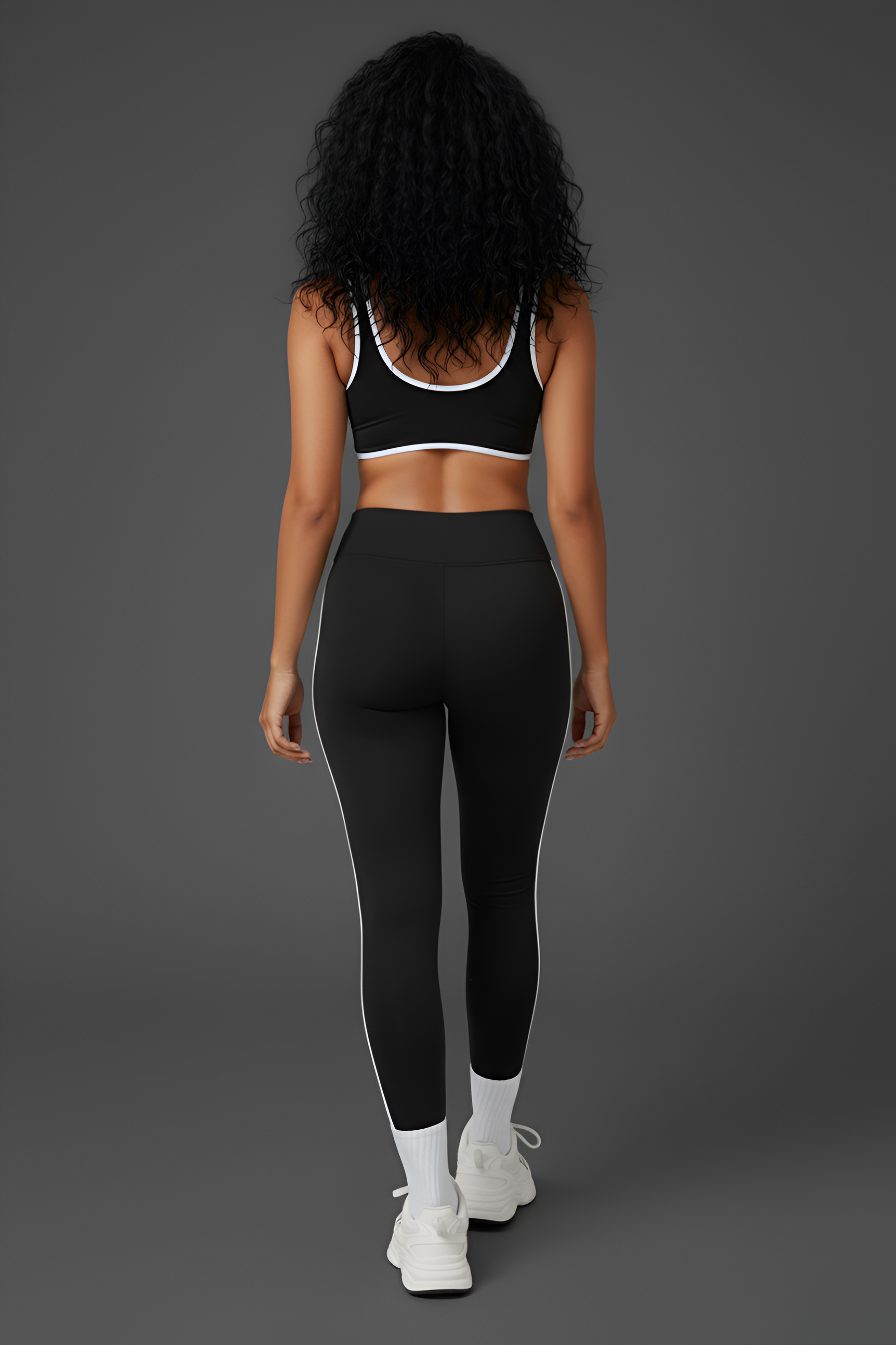 Elevate your activewear game with our Sleek & Sporty Athleisure Set. Designed for both performance and style, this set features a supportive sports bra with classic white trim and high-waisted leggings with a flattering side stripe detail. Crafted from a comfortable, flexible fabric, it's perfect for your workouts, daily errands, or simply lounging in style. Embrace comfort and confidence with this versatile and chic ensemb